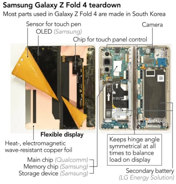 有日媒拆解了三星的新款折叠屏手机“Galaxy Z Fold 4”,并与其他机型进行了对比。报告发现,这款手机零部件价格加在一起的估算成本约为670美元,在销售价格中的占比不到40%,成本率甚至低于苹果的旗舰机型“iPhone14 ProMax”(46%)。