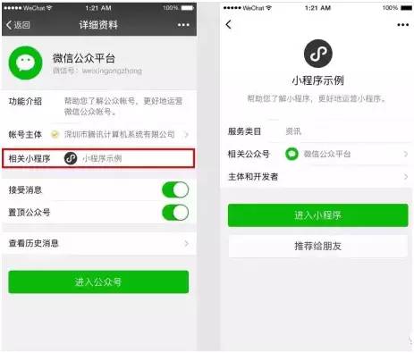 3.小程序和公众号独立,但可以绑定同一公司的公众号,一个小程序最多可以绑定一个公众号,一个公众号最多可以绑定5个小程序。