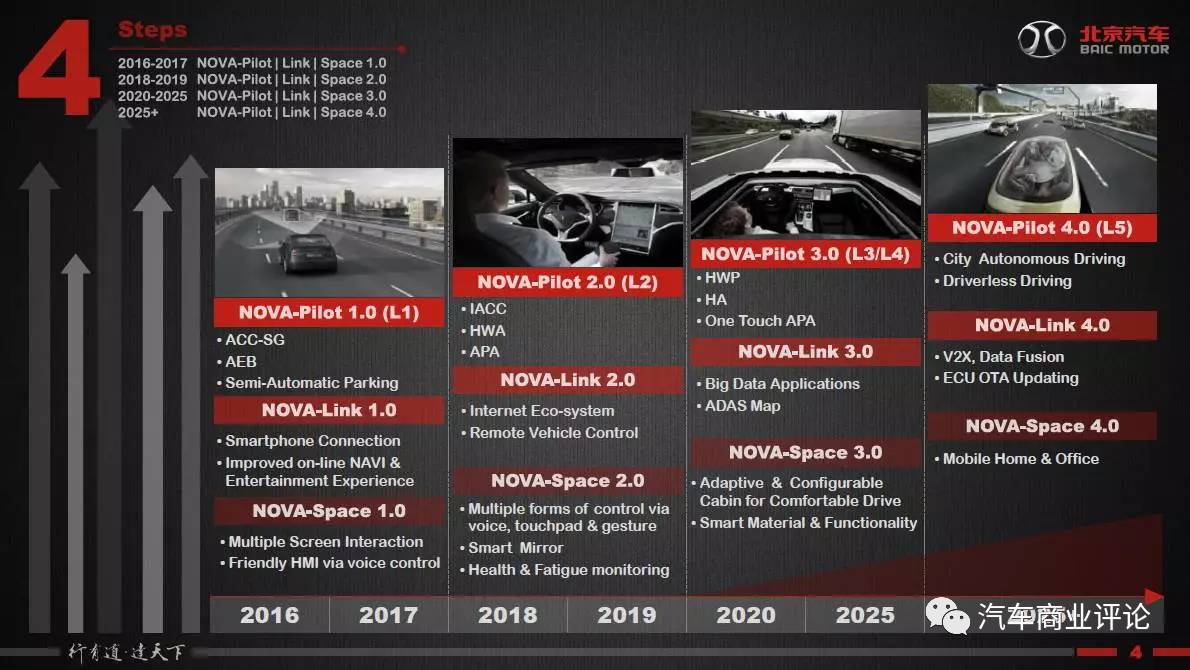 ▲北京汽车自动驾驶时间表。