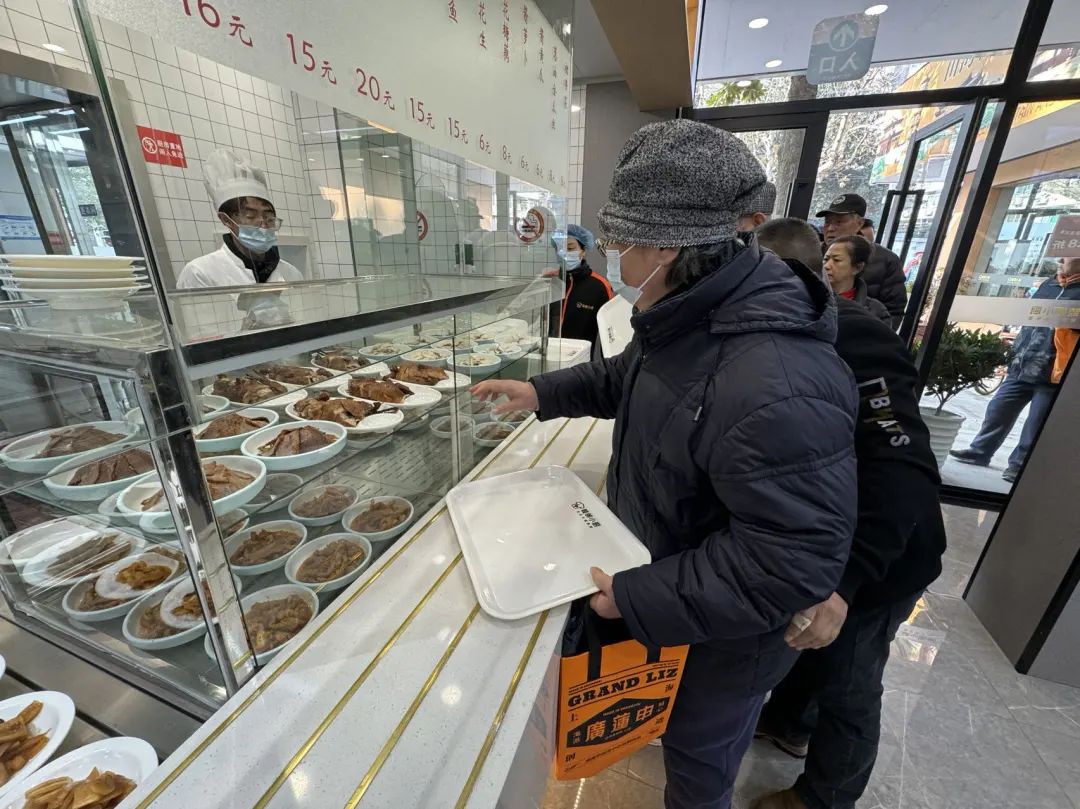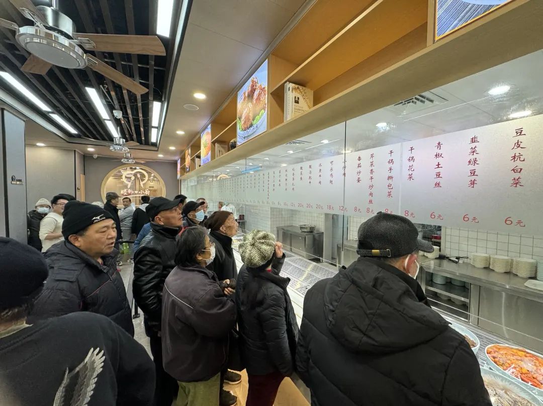开业当天,周边居民纷纷赶来尝鲜,迫不及待地想看看这家社区食堂究竟有哪些菜品、价格贵不贵、用餐体验如何……还未到午餐时间,就有顾客在“候场”了。
