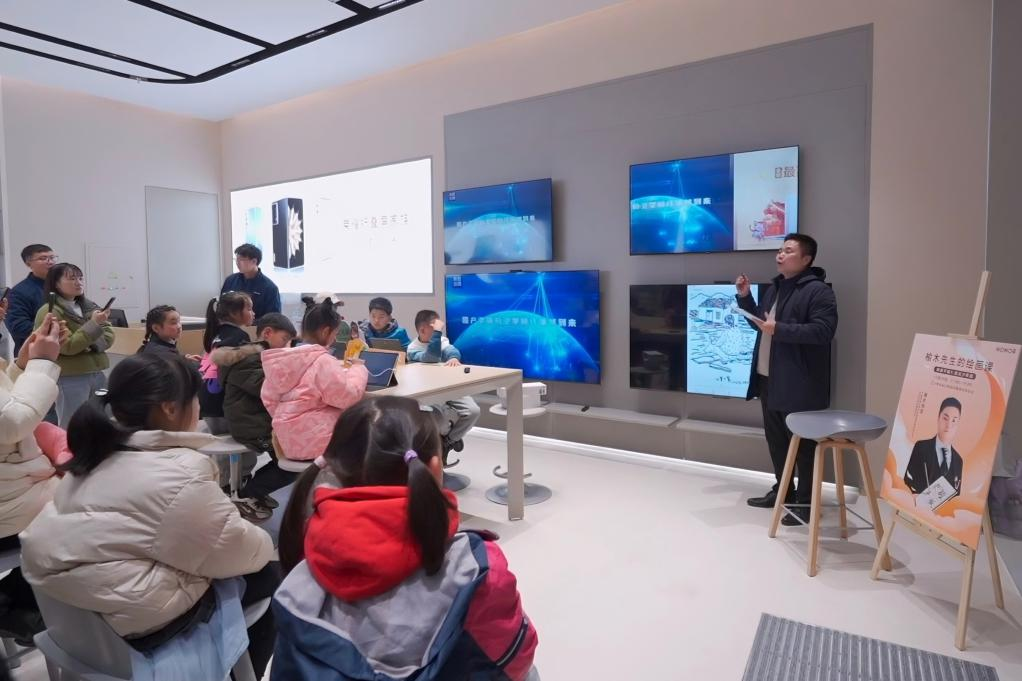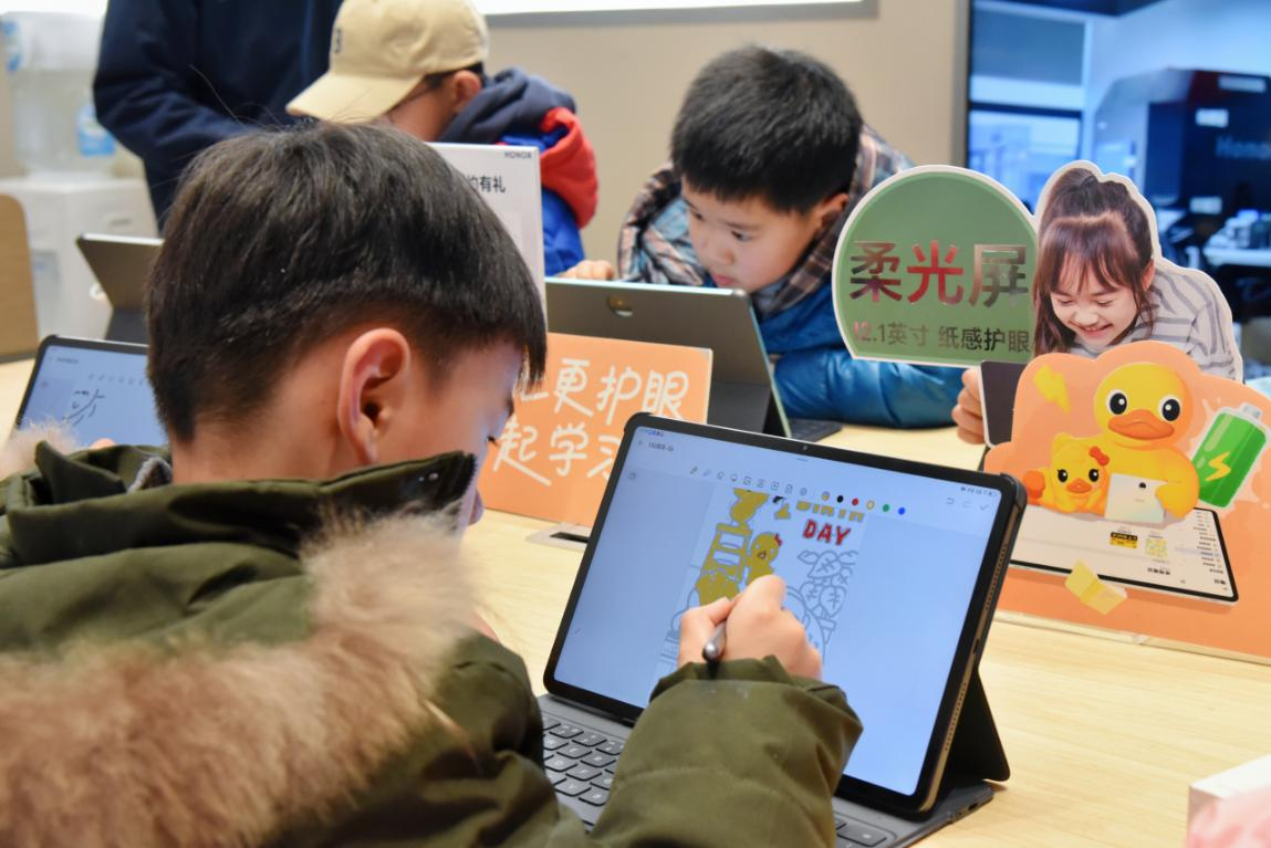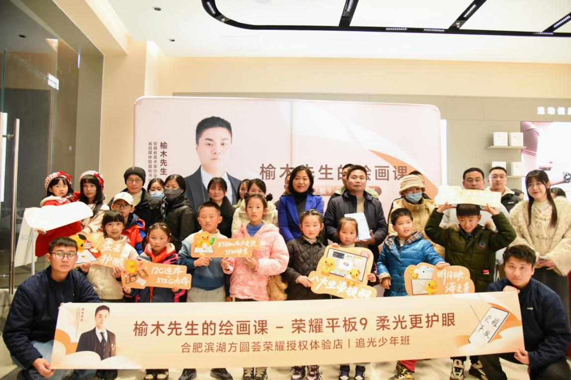 12月29日,合肥滨湖方圆荟荣耀授权体验店热闹非凡,该活动邀请来了安徽省美术家协会漫画艺委会副主任榆木先生,为家长及小朋友们带来了一场别开生面的“追光少年班 · 绘画遇上纸感柔光屏”活动。榆木先生使用荣耀平板9现场绘画教学分享,受到家长和孩子们的欢迎。在榆木先生看来,荣耀平板9纸感护眼柔光屏带来了全新绘画体验,是数字时代的写画学习好伙伴。