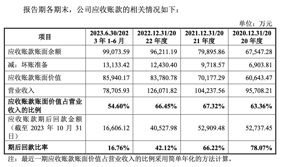 报告期内,公司应收账款账面价值分别为6.06亿元、7.02亿元、8.38亿元和8.59亿元,占同期末流动资产的比例分别为62.65%、56.30%、56.81%和51.42%;公司应收票据(含应收款项融资)账面价值分别为5585.16万元、8052.13万元、1.04亿元和9757.96万元,占同期末流动资产的比例分别为5.77%、6.46%、7.06%和5.84%。