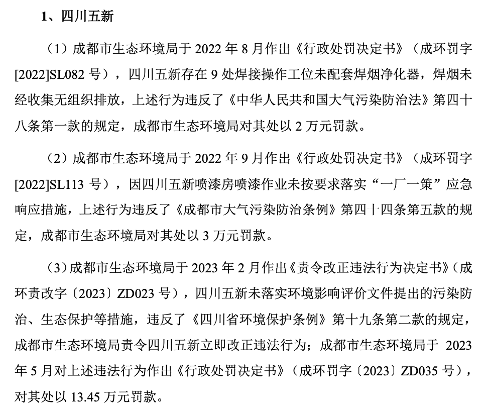 此外,界面新闻还注意到,报告期内公司及子公司多次因环保、安全生产受到行政处罚,部分情况如下: