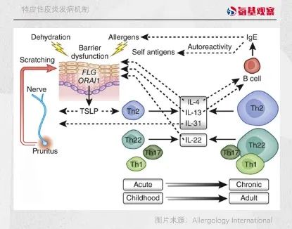 虽然当下研究人员尚未完全理清特应性皮炎的发病机制,但一个被普遍认可的机制是免疫系统异常炎症假说。