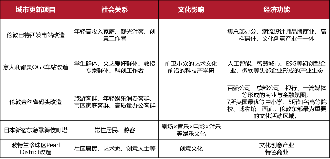 城市是文化的凝结、生活的载体。2000年英国出台《城市白皮书》,强调了文化、休憩、运动等人文内涵的重要性,开启了以文化为导向的城市更新新阶段。不少更新项目本身就携带文化基因,若能延续历史文脉,导入全新的文化表达,打造更具传播性、更年轻化的文化产品,能增加项目软实力,也能进一步催生更多文化产业,带动项目社会价值、商业价值、经济价值的提升。正如英国学者Miles and Paddison所说,“文化可以作为经济增长的推进剂”,不仅可以丰富消费内容,还能产生更大的城市影响力。