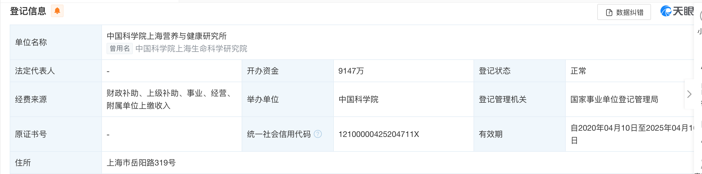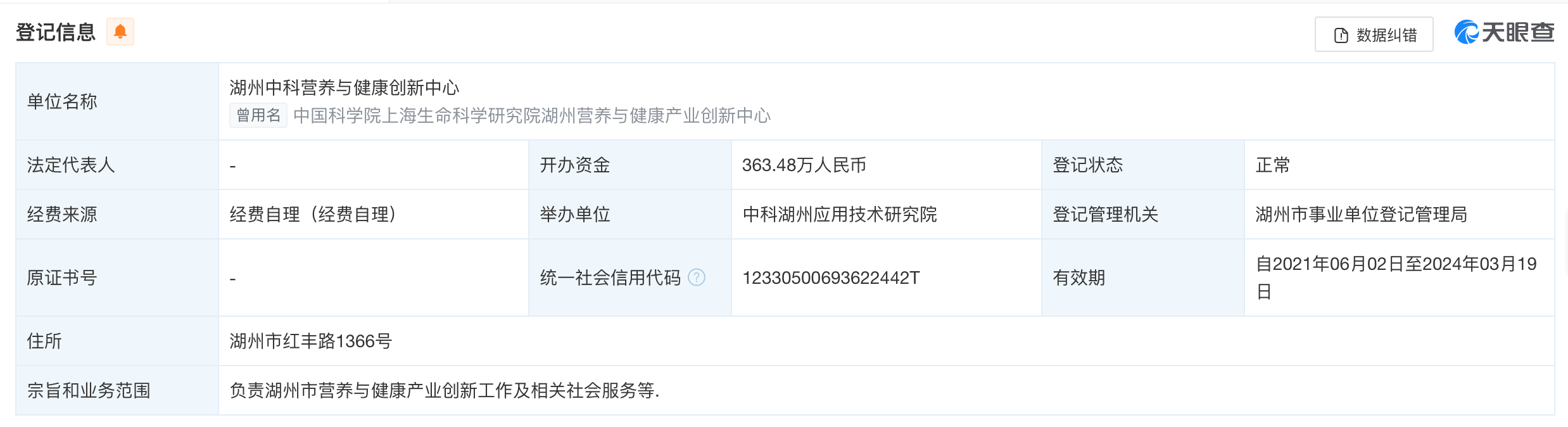 天眼查显示,湖州营养中心目前的举办单位是中科湖州应用技术研究院,中科湖州应用技术研究院的举办单位是湖州市人民政府。中国科学院上海生命科学研究院(现:中国科学院上海营养与健康研究院)的举办单位是中国科学院,中国科学院的举办单位是国务院。