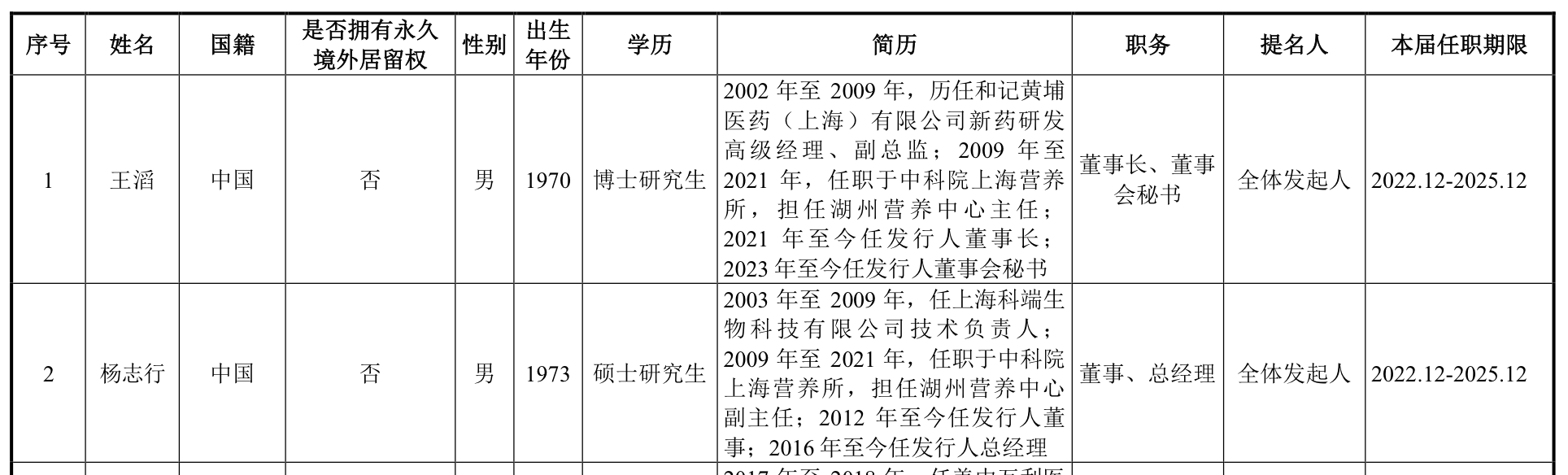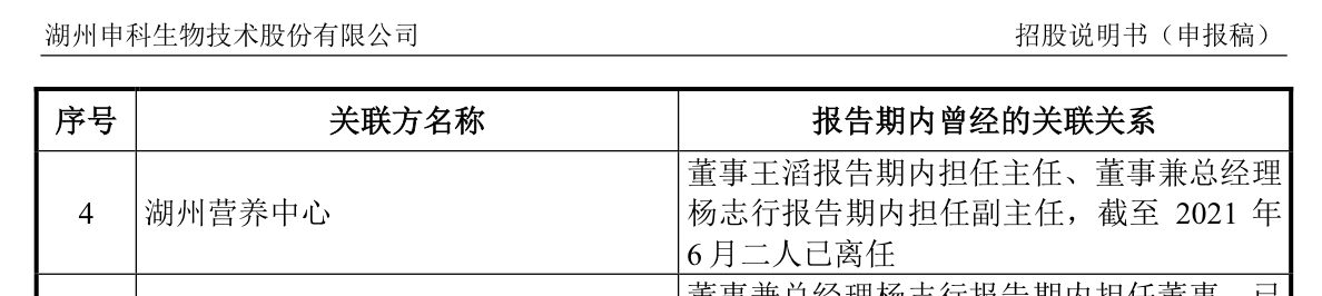 值得注意的是,王滔和杨志行截至2021年6月已从湖州营养中心离任,也就是说在2016年6月申科有限第一次增资时至湖州营养中心持股稀释,以及2017年湖州营养中心将持股转让之时,两人或还在任。