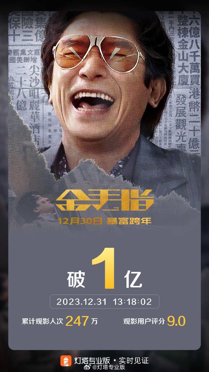据灯塔专业版实时数据,截至12月31日13时18分,影片《金手指》票房突破1亿元。