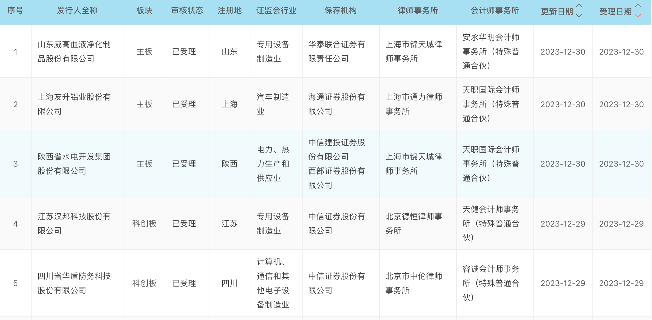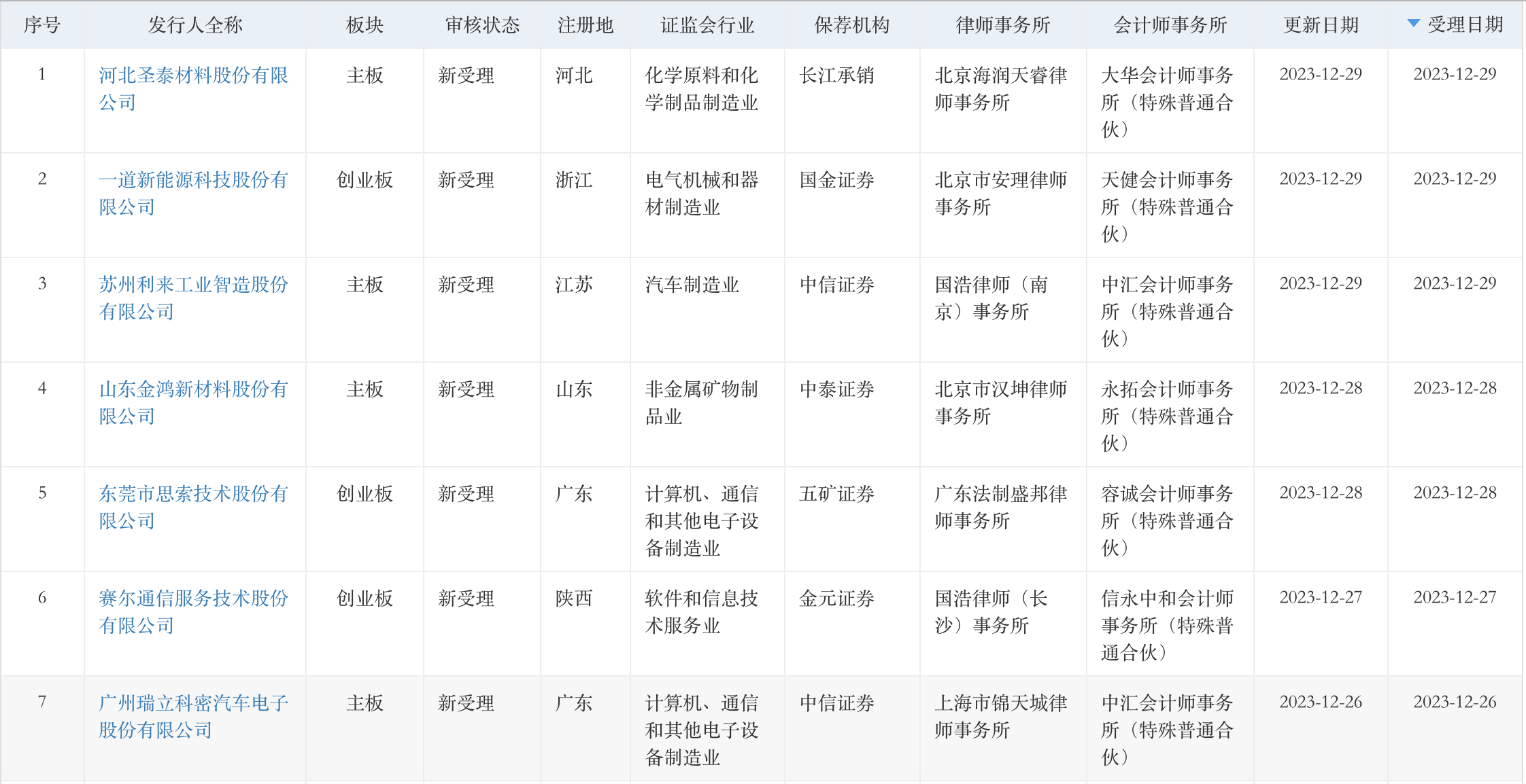 自2023年9月28日之后,沪深两市就停止了IPO的新受理。直到2023年最后一周,3个月空窗期结束,沪深两市也恢复了新的受理。
