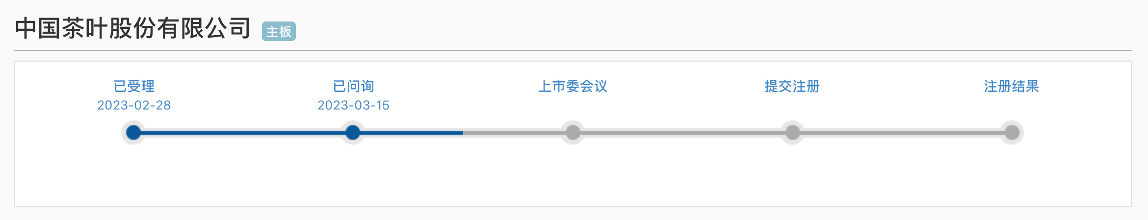 中国茶叶在2023年3月15日就进入问询环节,但目前未披露回复,其计划融资额11.4亿元。中国茶叶主营业务为各类茶叶及相关制品的研发、生产和销售,公司创造了畅销海内外的“中茶”核心品牌及“海堤”“猴王牌”“蝴蝶牌”“百年木仓”“龙冠”等子品牌,主要产品包括乌龙茶、普洱茶、花茶、红茶、六堡茶、白茶、安化黑茶、绿茶及相关制品等。