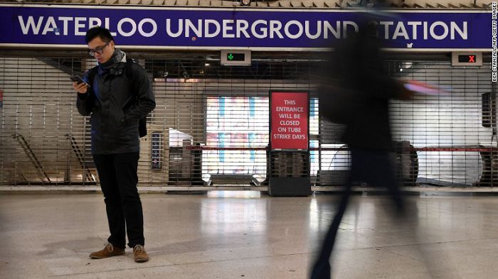 伦敦所有地铁站在周一早间一直保持关闭状态,地铁公司与工会一直在裁员和关闭售票窗口并实现全面自动化方面有着长期纷争。根据伦敦市长萨迪克·汗的说法,其他服务岗位只有67%的满员率,工会表示很多情况下列车直接经过车站并不停留。