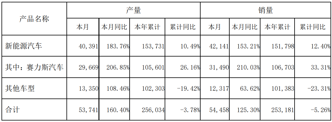 赛力斯:2023年新能源汽车累计销量15.18万辆,同比增长12.4%