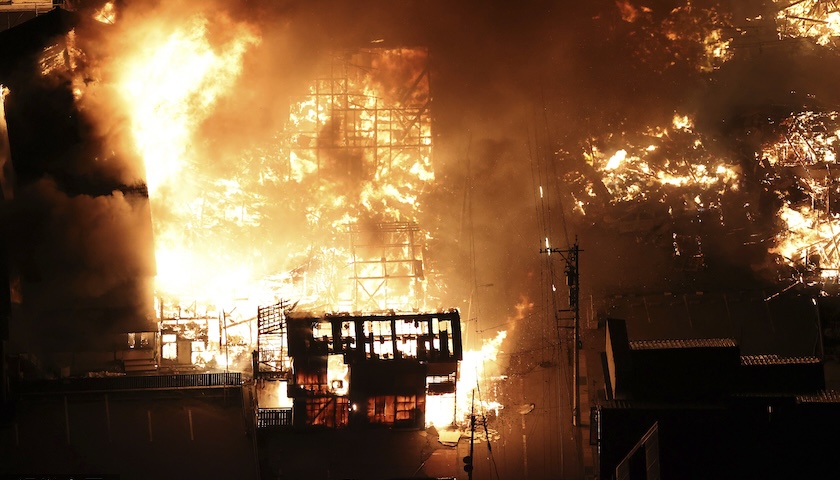 当地时间19时20分左右,受地震引发的房屋倒塌、道路受损影响,石川县轮岛市河合町地区发生多起火灾,火势有大范围蔓延的趋势,消防人员正在灭火,受伤人数暂不确定。