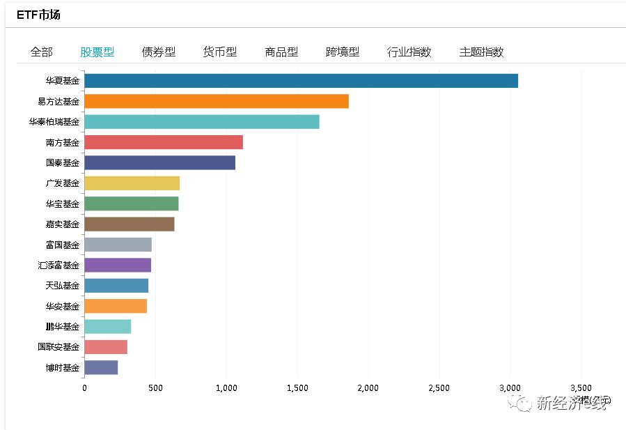 不过,不同管理人在股票ETF的优势品种和布局重点有所差异。如华夏基金、易方达基金、华泰柏瑞基金、南方基金旗下ETF规模以宽基品种为主,国泰基金则以规模以行业主题品种为主。