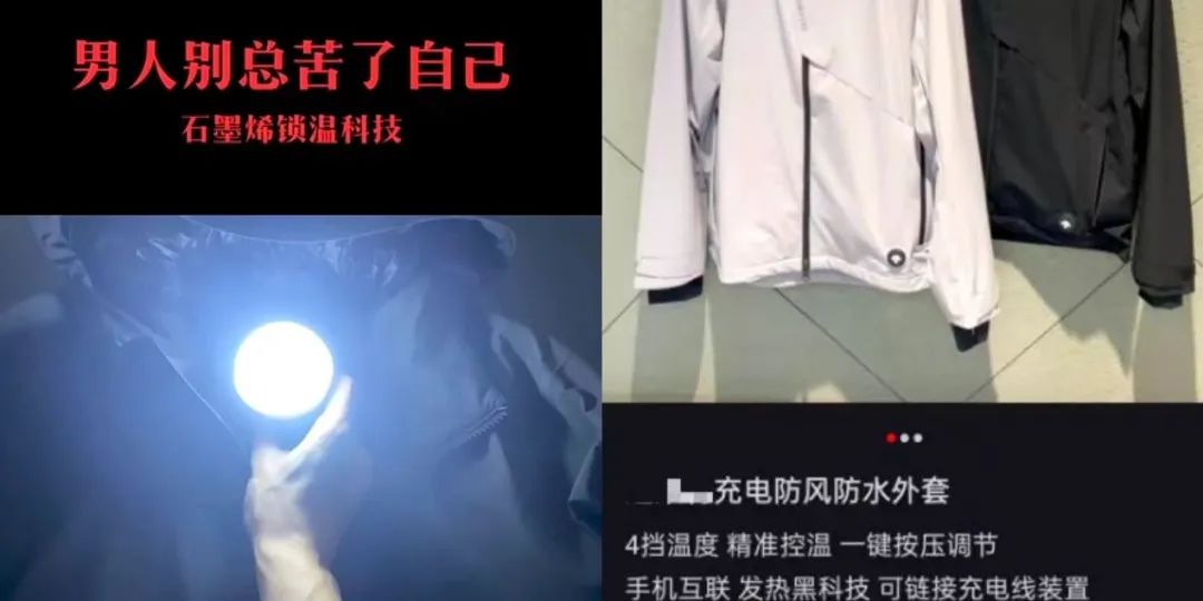 有的冲锋衣,号称添加石墨烯,为了体现暖,拿灯泡接触衣服都能亮;有的更玄乎了,用手机就能智能控温,还能精准调节温度,只要能卷的都得加上。
