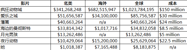 金球奖获奖影片本周末(1月6日——1月8日)成绩为: