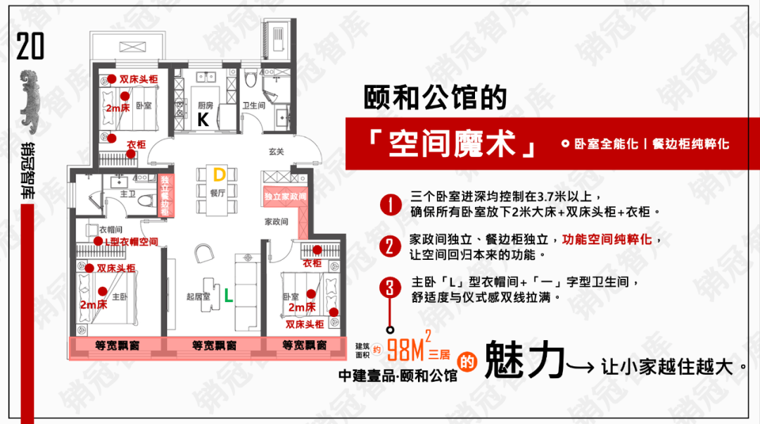 主力98平户型,表妹做了同面积段的量化分析,颐和公馆绝对是同面积段的佼佼者。