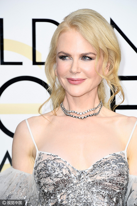 妮可:“谢谢!是的,我太喜欢这件礼服了,它好闪耀,我特地为它搭配了Fred Leighton 弗莱德-雷顿的钻石项链!你们今天也好美!我们来合张影吧!”
