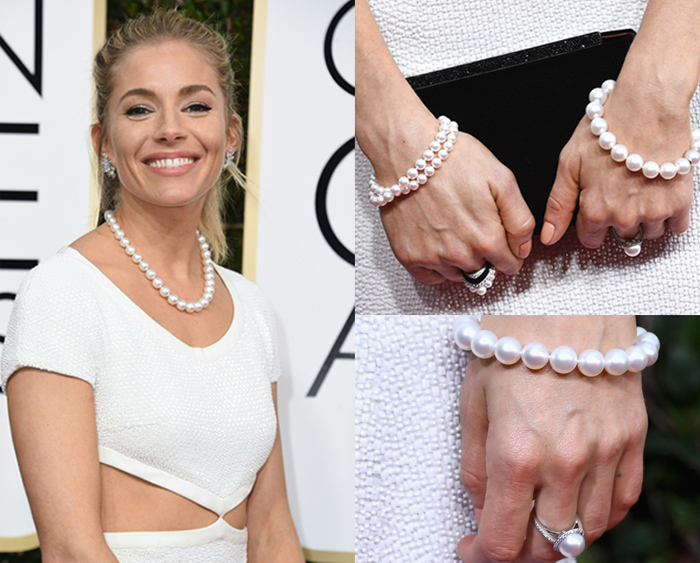 西耶娜:“亲爱的杰西卡,我很远就看到你了!太喜欢你今天的礼服了,这蓝色和钉珠刺绣让你很优雅。项链是 Piaget 伯爵吗?”