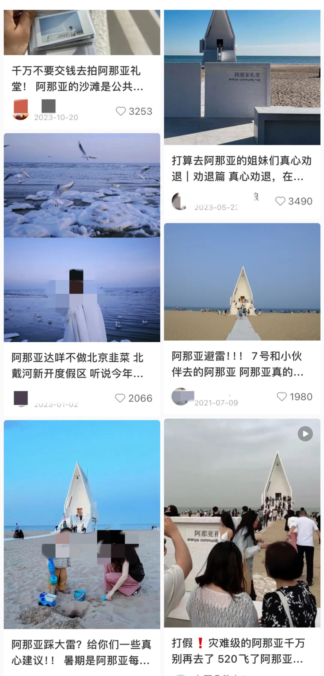 2023年以来,来到北戴河的消费者越来越多地在社交平台上发布差评,避雷帖的焦点则是人多。当人们发现,在这里只能看到排不到的餐厅、人满为患的海滩、摆到台面上来的等级差异与矛盾,唯独不是想象中那个舒适放松的生活方式小镇,就会意识到,阿那亚不再是乌托邦,只不过是另一个北京。
