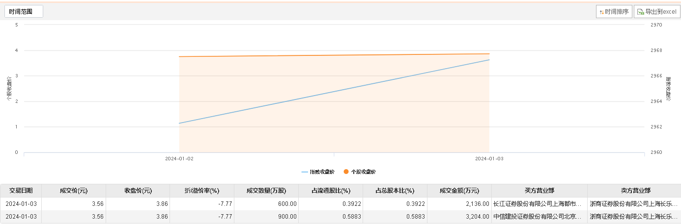 龙元建设今日大宗交易折价成交1500万股,成交额5340万元