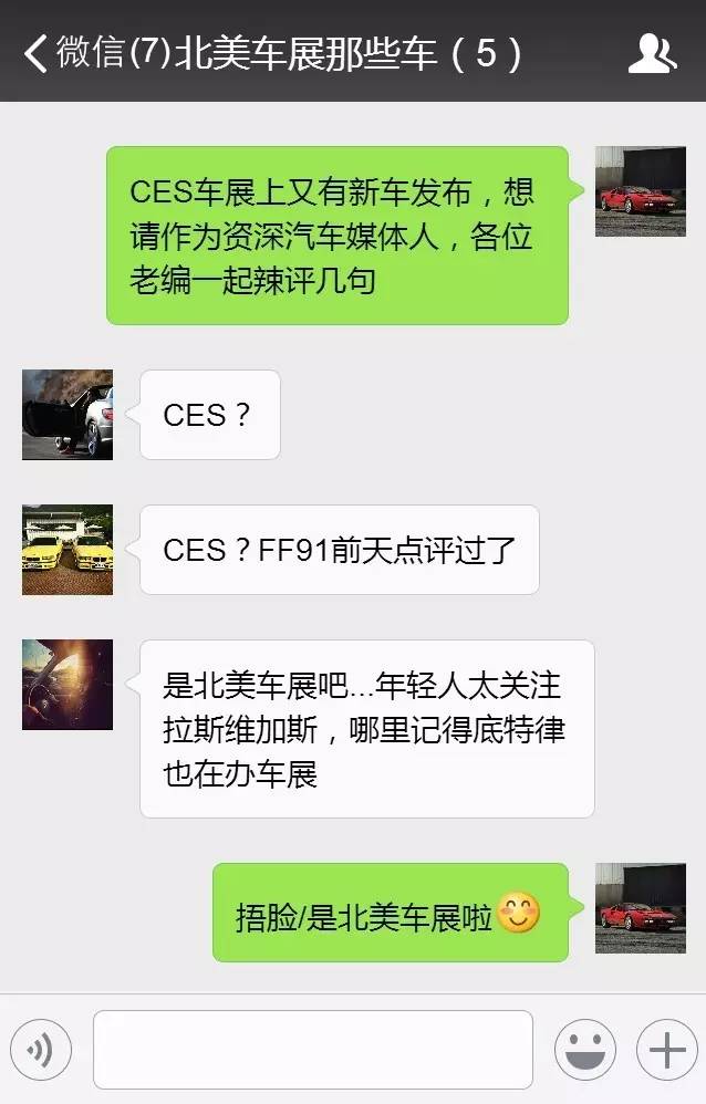 最近这段时间各大汽车厂家纷纷在CES上争风吃醋各出风头,甚至让小编一时间都忘了一年一度的北美底特律车展已经拉开帷幕,幸好《汽车杂志》从来都不缺谋划全局的专业编辑,在被“《汽车杂志》亚太区主编”张磊老师提醒之后,小编赶紧拉来大头义、严绍健、林中鸟、何连山等四位老编辣评一番: