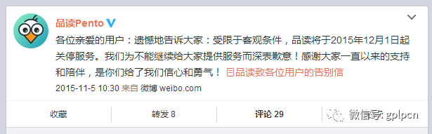 品读项目 还挂在官网上,不过这个项目已经于2015年12月1日就关停了服务。