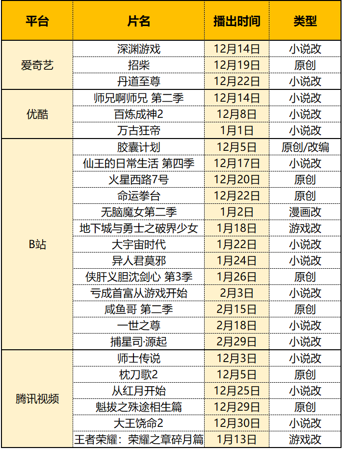 当下已经确定12月-2月上线的动画,可能还会有其他新作陆续定档: