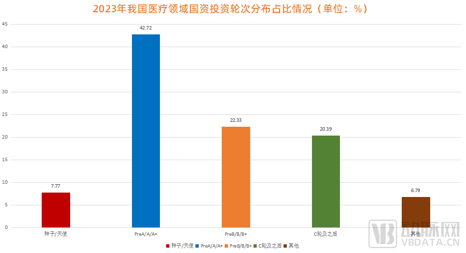 图4. 2023年我国医疗领域国资投资轮次分布占比情况(数据来源:动脉橙)