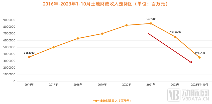 图5. 2016年-2023年1-10月土地财政收入走势图(数据来源:常垒资本)