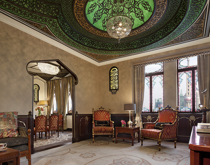 和平饭店的美丽在于,无论你从哪个转门进来,步入大厅的瞬间都仿佛穿越到老上海,这种地道的感觉让人欣喜。三层楼高的吊顶、造型用色高级的墙绘,以及彬彬有礼、不卑不亢的待客态度都令人满意。唯独缺点是大堂空间太大,又呈现“丰”字形结构,刚入住的时候容易在大堂迷路。不过,不赶时间的迷路何尝不是一种乐趣呢。