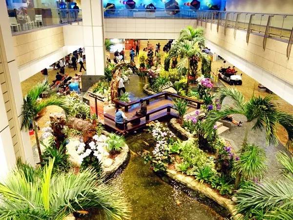 新加坡的樟宜机场是世界十大最美机场之一,樟宜机场内到处可见绿化的花园还有舒适座椅,坐地铁就能抵达,距离市区17公里左右。樟宜机场有3个航站楼每个航站楼间都有免费的接驳小火车。