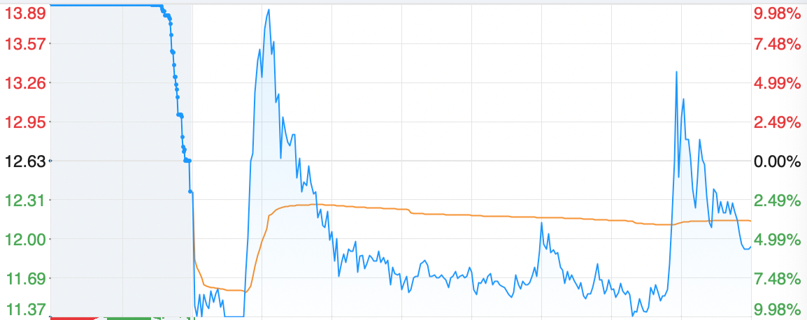 1月5日开盘后五分钟,利柏特极速跌停,僵持近半个小时后,10点03分陡然拉升至9.66%,此后又一路下行,一度跌逾8%。午盘后继续低迷,跌幅达9.9%,收盘前半小时,利柏特突然短暂翻红涨逾5%,最终,收跌5.46%,报11.94元/股,当日成交额11.92亿元。