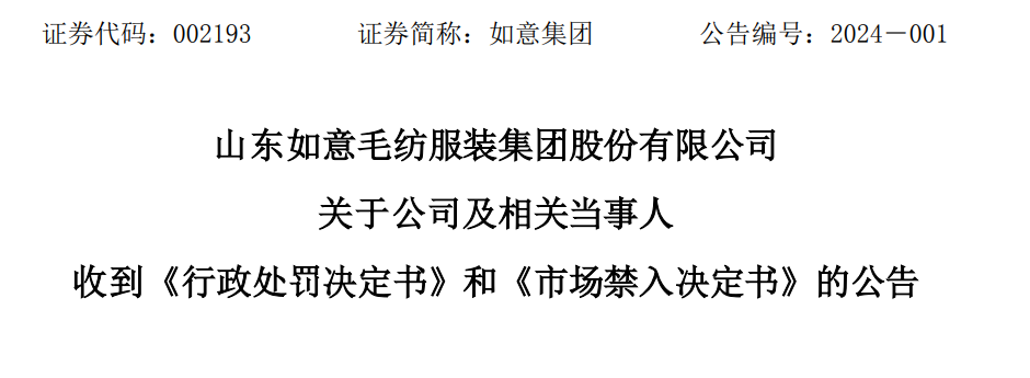 如意集团在1月4日收到中国证监会山东监管局下发的《行政处罚决定书》和和《市场禁入决定书》。