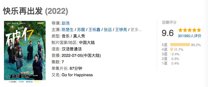 不过客观现实也需要正视:以市场认可度最高的爱奇艺《种地吧》为例,它豆瓣开分9.0、打分人数近六万,据媒体统计是今年打分人数最多的综艺。但事实的另一面却是:2022年被业内人士成为旗帜性作品的《快乐再出发》,豆瓣超30万人打出9.6分。换言之,距离真正的标杆性作品,还有较大的市场空间。