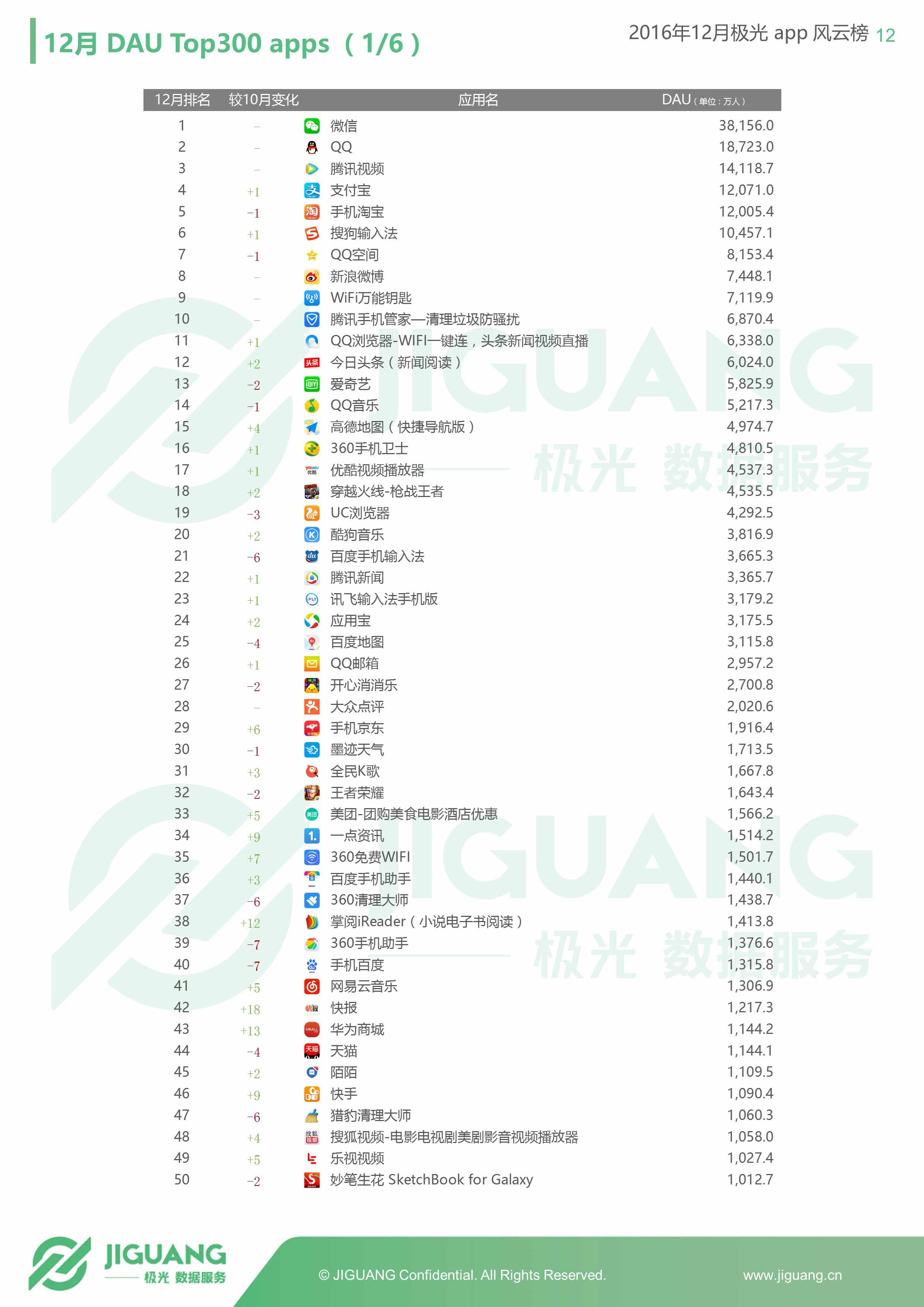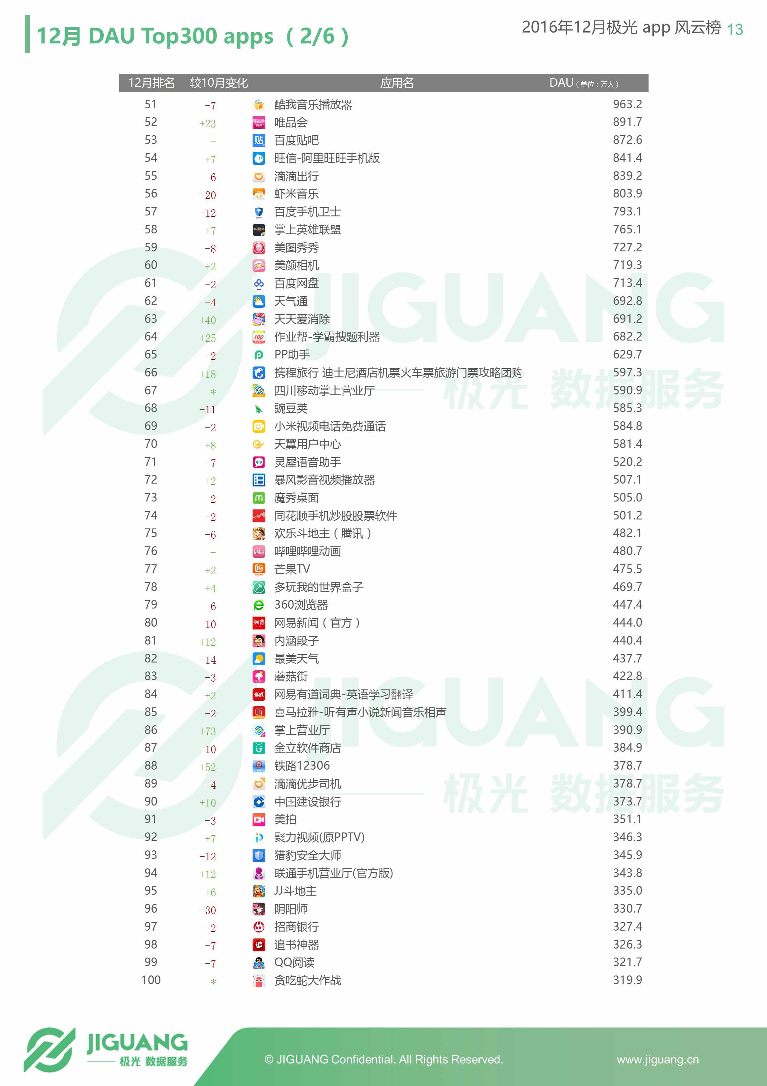 12月渗透率未进入 top500的 app 不在该榜单统计范围
