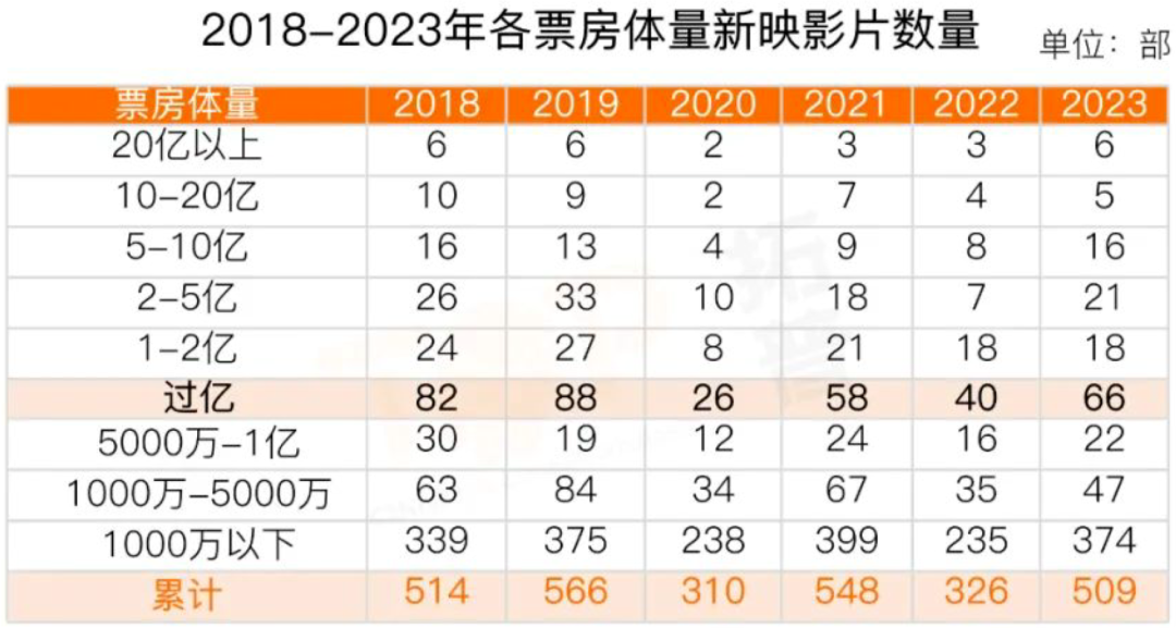 需要明确的是,2023年电影市场的成绩一部分是靠前几年积压影片造成的,后续电影市场的发展首先要靠的是进一步的市场供给。