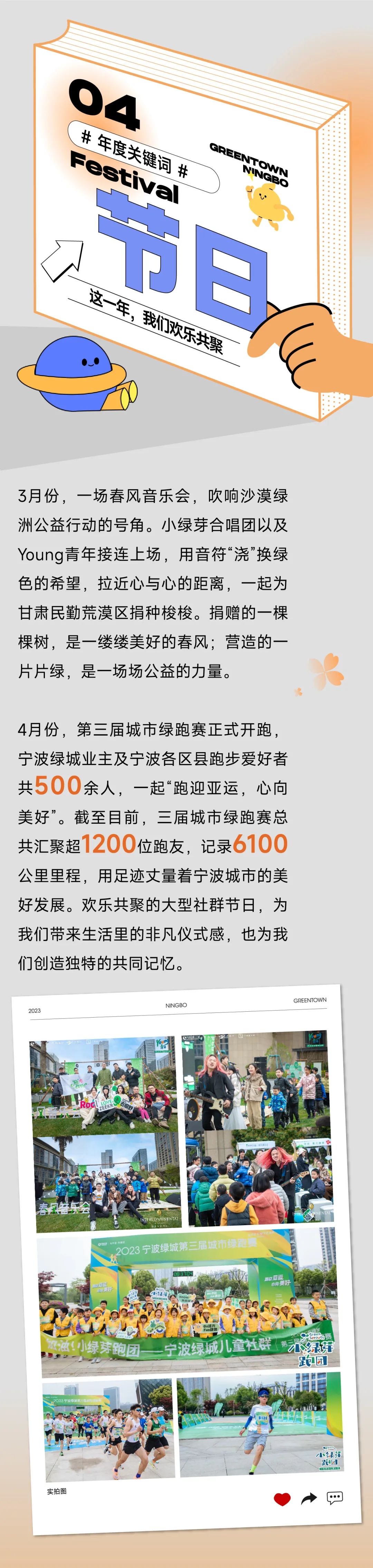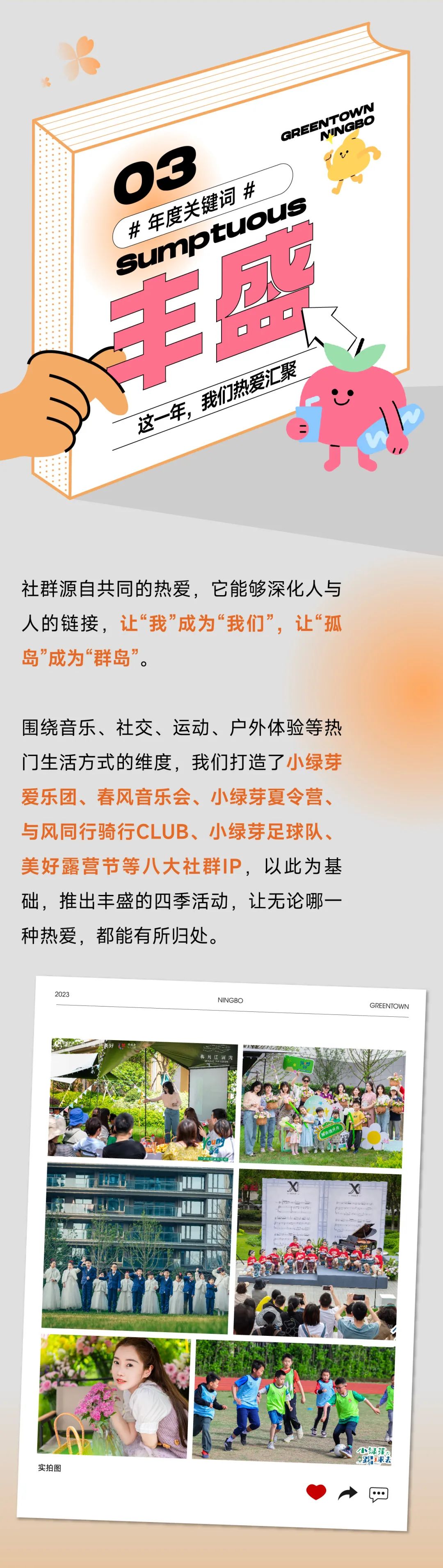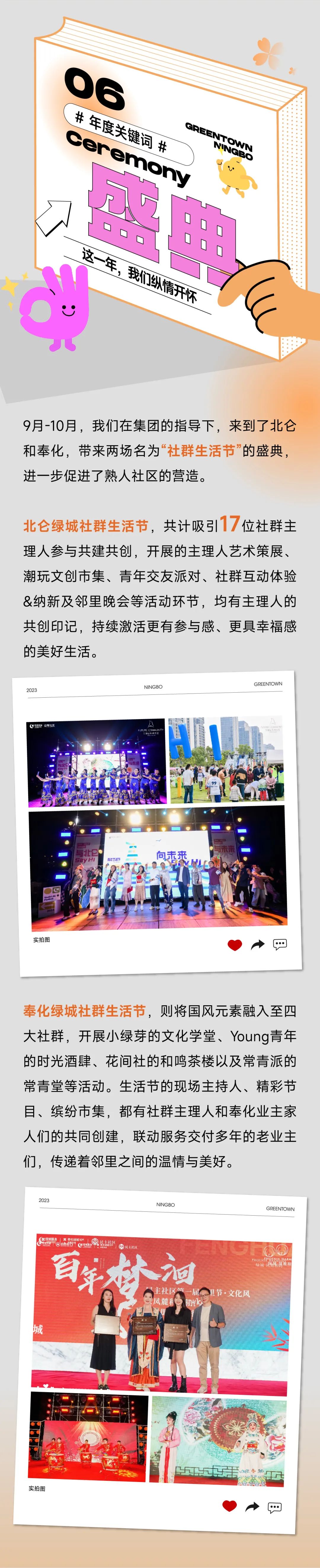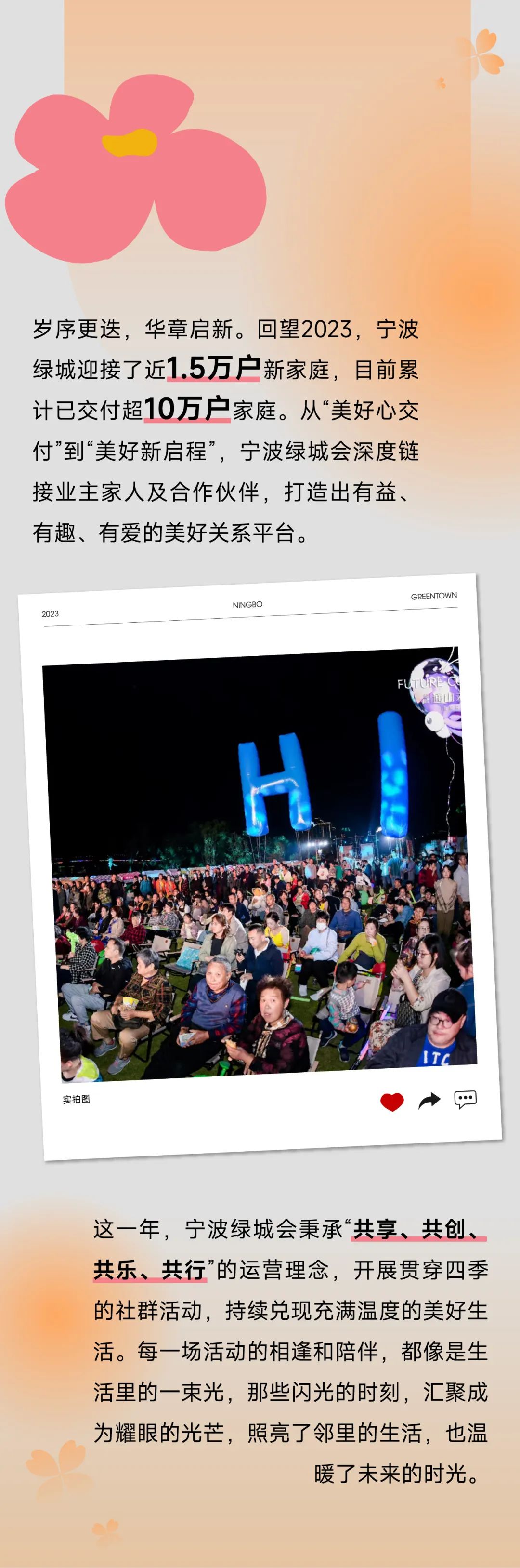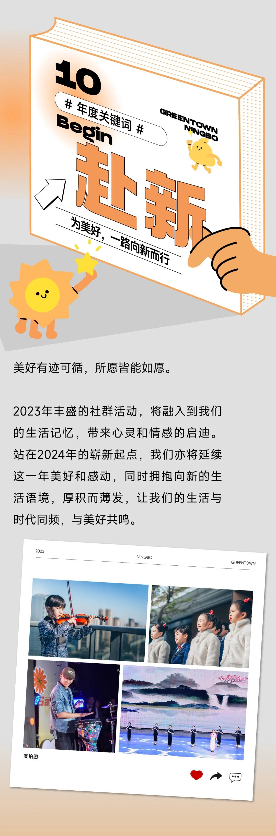 10个闪光点,是宁波绿城会的美好侧面,它们为2023画下完满的句号。也让我们更加期待来年丰盈的美好生活,2024年,我们的美好致远是与所有的绿城就朋友们,一起参与这名为“生活”的盛大现场