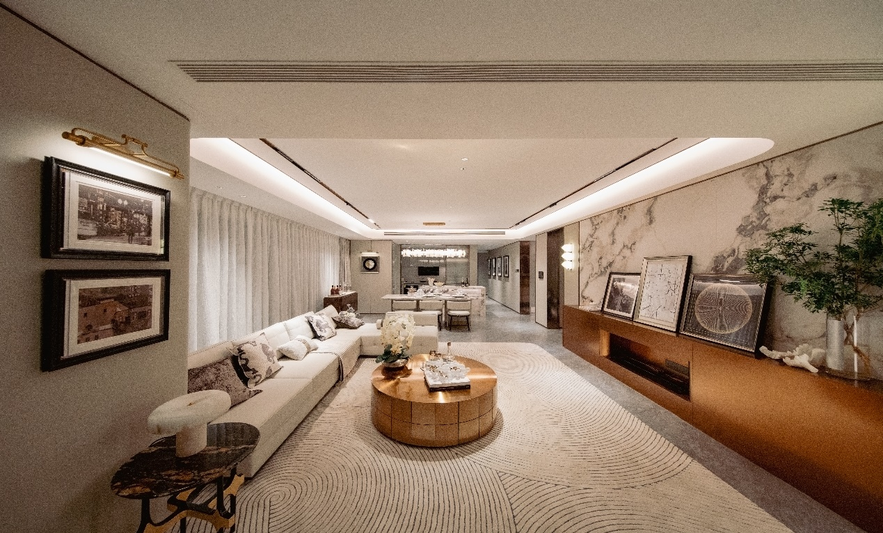 在这里,业主所能拥有的尺度边界,不再限制于物理空间框定的范围,还有更多来自设计中关于美的哲学,为生活填色,为居住后的愉悦感添彩。