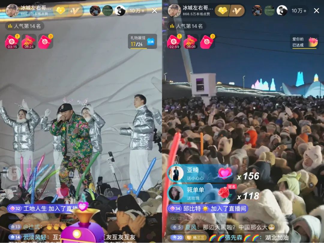 12月29日那天,左右哥和往常一样,在冰雪大世界的大舞台上演出,带着台下成千上万的观众们蹦迪、跳兔子舞。手机照常架在舞台一旁,开着直播,但左右哥的全部注意力,都在现场的观众身上。