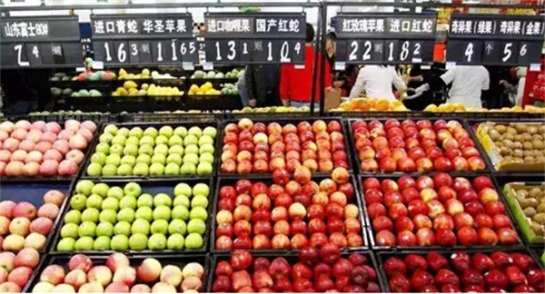 (进口水果摆满商超货架)