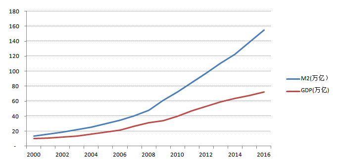 (2000-2016中国GDP和M2)