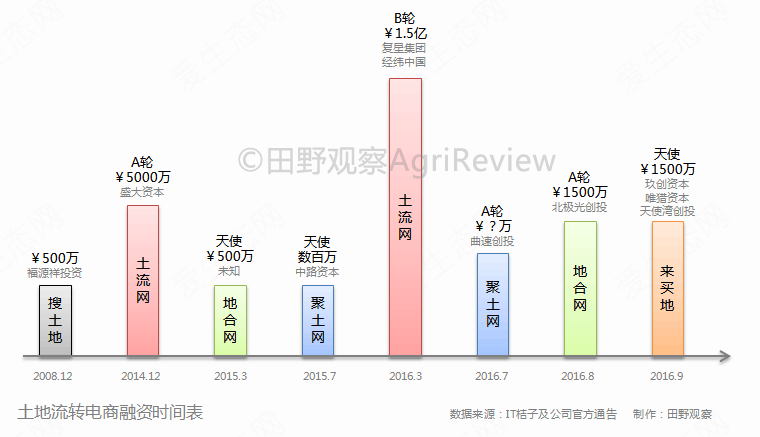 鉴于土地流转政策的逐步明了,以及移动互联网和智能手机的普及,土地流转电商在2015年-2016年呈现了高速发展的趋势。土地流转电商的发展打破了信息不对称,降低了交易成本,大大促进了土地流转的进度。