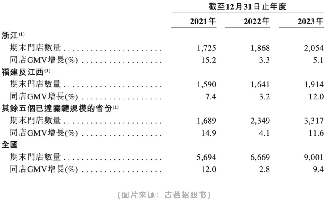 二是重者恒重。之所以前文提到很多读者对古茗没有感知,是因为古茗开店的策略前期基本上就是围绕着长江以南进行,甚至就是绕着浙江转。招股书显示,2023年在已经建成的规模以上八个省,贡献了古茗全年87%的GMV。古茗还在招股书中提到,自己向97%以上门店提供两日一配的冷链配送,平均配送成本仅占GMV的约0.9%,根据灼识咨询报告,远低于行业2%的平均水平。这与开店地域紧密相连也有着很大的关系。