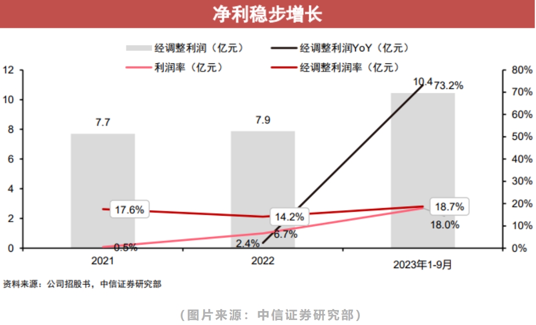 从利润方面来看,虽然古茗的营收远不及蜜雪冰城,但是利润增长率就显得非常感人了。根据招股书中的数据显示,古茗的利润增幅还是很有亮点的:2022年全年古茗的利润为7.88亿元,而到了2023年仅前九个月就已经干到了10.45亿元,如果对比2022年和2023年的前九个月,利润增长率高达73.2%,利润表成长性十足。