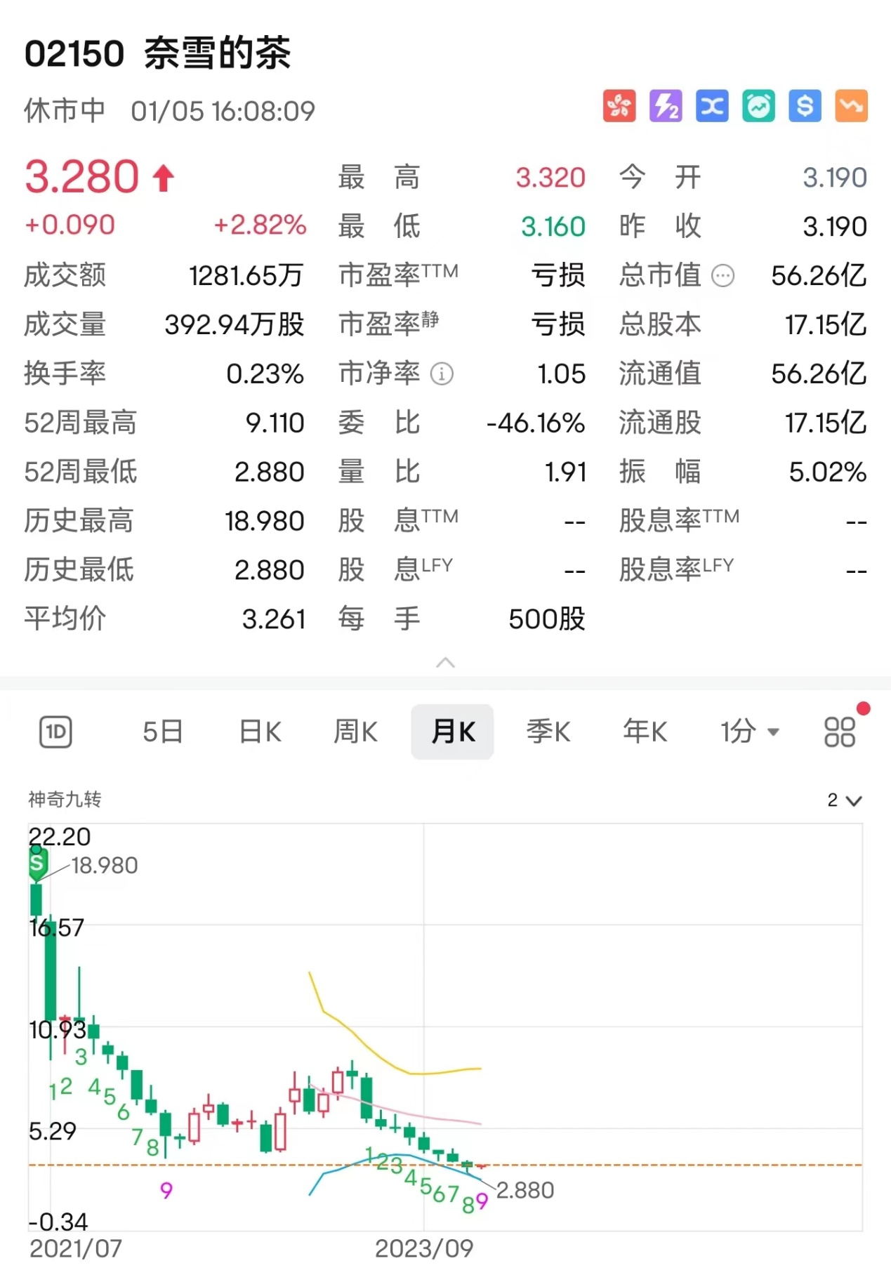 在这样市场形势一片大好的情况下,奈雪的茶仍然在亏损,而且股价走势“没有最低,只有更低”,目前仅2.88港元。一向自诩高端的奈雪的茶上市后表现如此,对于古茗上市后的走势是否存在影响,仍然是个未知数。