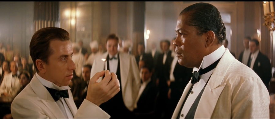 片中黑帮老大的聚会场所,灯红酒绿之下,一定有演奏着爵士乐的乐队,华丽、张狂、混乱,甚至还带着点低俗的意味。