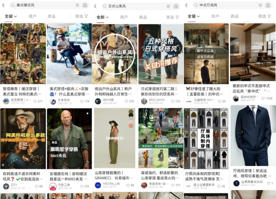 如果潮酷青年和知识分子都不能让你心动,那么还有美式硬汉风、日式山系风、中式厅局风,总之,一定会有个人设风让你对号入座。