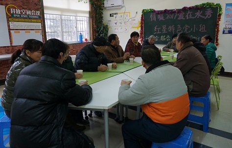 上午九点是党小组活动的时间,老徐提前十分钟赶到社居委二楼会议室,这次活动的内容是讨论2017年服务帮困的事项,主题是“情暖2017爱在水秀”,好几位老党员都谈到了身边的几位困难户。老徐的特长是小修小补,他1992年从格兰塑料机械厂退休下来,还承包过工厂,开过修车摊,就是放不下这身手艺,现在谁家的卫生间漏水了、修个门锁了、坏了纱窗了,他都是随叫随到,在小区里帮过的人是不计其数。他在小区忙碌,老伴在家里做饭收拾,两个人都乐呵呵的。