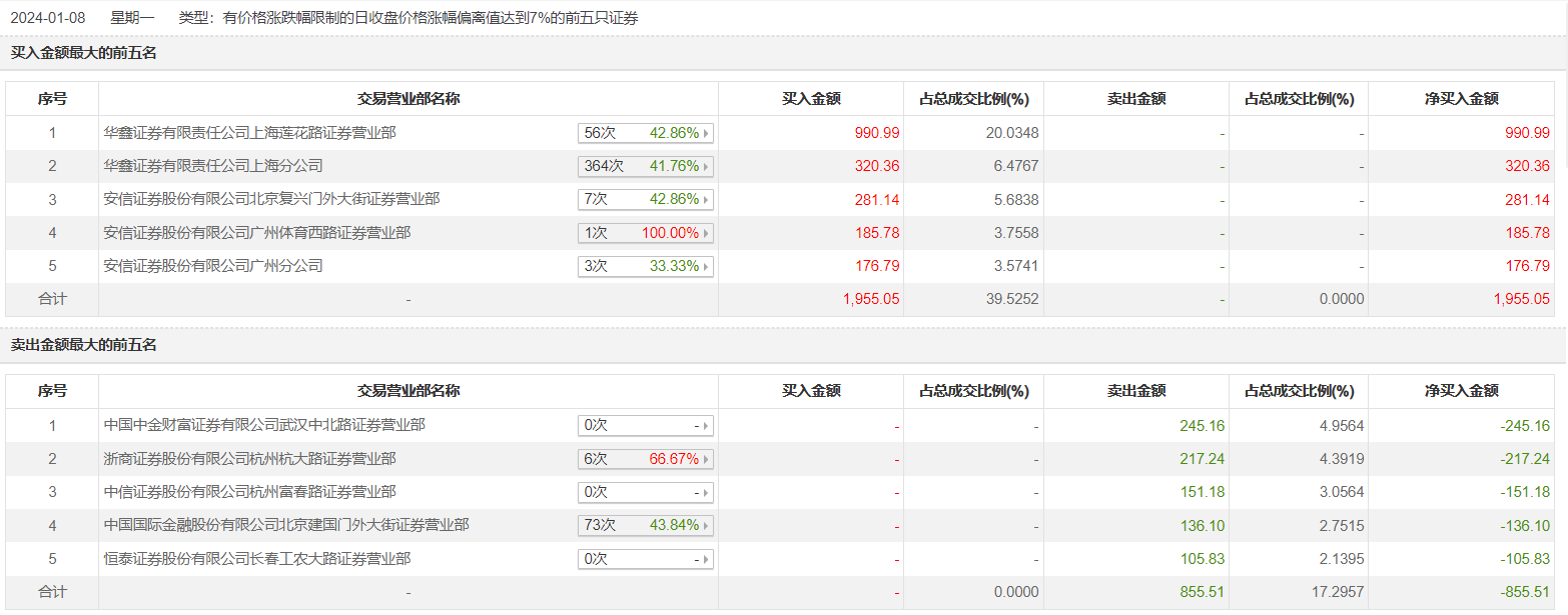 园林股份1月8日涨停,全天换手率5.46%,成交额4946.35万元,振幅10.82%。龙虎榜数据显示,营业部席位合计净买入1099.55万元。上交所公开信息显示,当日该股因日涨幅偏离值达11.44%上榜,营业部席位合计净买入1099.55万元。